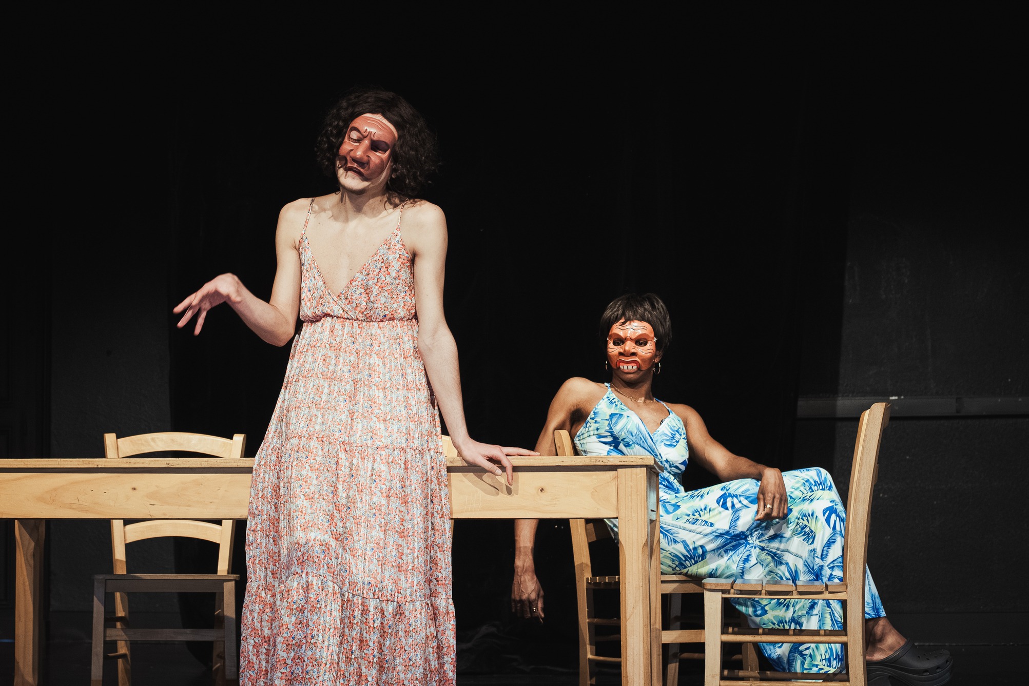Le masque est un outil à la fois contraignant et libérateur : en l’apprivoisant, le ou la comédien·ne précise ses gestes et élargit son jeu.